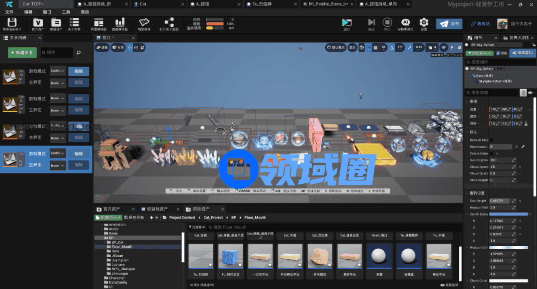 虽然只有一个人开发,但是好在轻游梦工坊的上手难度不高,“毕竟从0到1是最难,编辑器里有很多游戏模板,降低了制作门槛,还有蓝图功能以及大量美术资源支持,省去了很多“造轮子”的基础工作,大大缩短产品开发的周期。”
