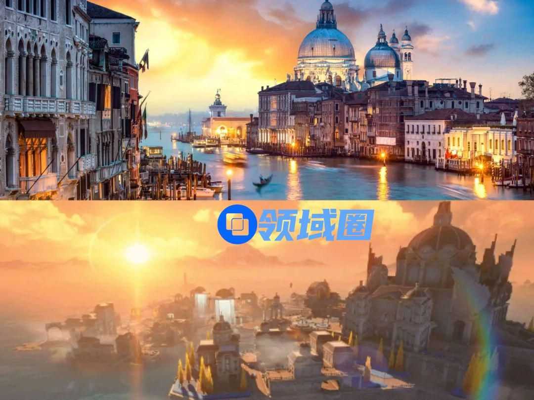 好比黎那汐塔的主城“拉古那”,便是《鸣潮》风格化的绝佳体现,这座城市的整体设计参考了威尼斯水城,拉古那中的声骸贡多拉船、星罗棋布的城市内水道、以及岸上建筑的巴洛克式圆顶、教堂的罗马式拱顶,都有着现实世界的对应参考。