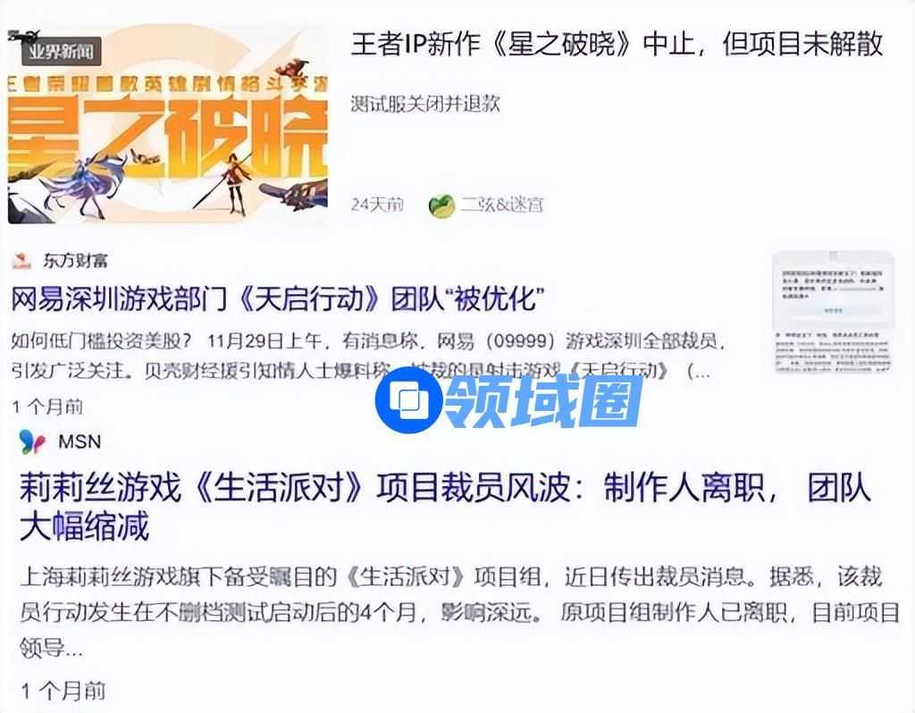 差不多一个月时间里,各家厂商厂商就像约好了一样,相继迎来变化:网易砍掉了《天启行动》,对深圳办公室的员工进行了分流;莉莉丝关闭《生活派对》测试,项目组大幅裁员;腾讯中止《王者荣耀:星之破晓》开发,项目组新方向待定;吉比特冻结调薪放缓晋升,调整发行策略;刚刚发布了在研旗舰游戏《望月》PV的诗悦,也对一不及预期的项目进行调整。还有一些悄然调整的项目,这里就不过多赘述了。