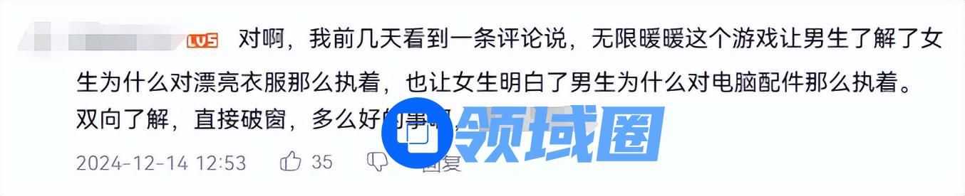 或许,当《无限暖暖》撕下“女性向”这个标签后,我们可以思考的是不仅游戏需要破圈,或许性别刻板印象或许也可以适当解放。当然每款游戏会有他的核心玩家,但好的游戏也可以淡化性别。谁说男性不能玩换装游戏,而女性不会去拥有好电脑。