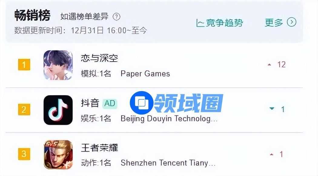 这已是今年《恋与深空》第四次登顶。上一次登顶还在月初,12月2日,仅是秦彻单人新卡池开放,就让它登顶榜首,这次全新版本更新登顶也在意料之中。