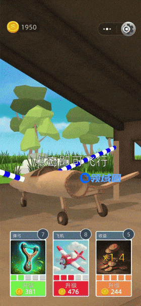 该游戏的核心玩法就是模拟飞机制作和飞行,刚进入游戏的时候,飞机的动力由一根橡皮筋提供,玩家只需拉动橡皮筋即可推动飞机飞向天空,飞机落地后,系统会根据飞行距离向玩家提供金币奖励,随后玩家就可以使用这些金币,对飞机、皮筋或收益效率进行提升,从而让飞机飞得更远,获得更多奖励。