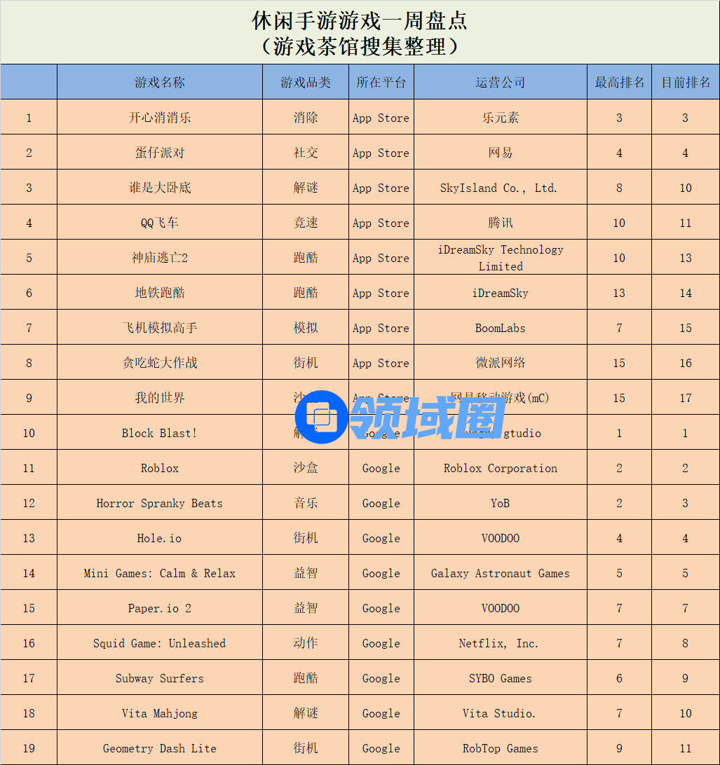 休闲手游:《Block Blast!》持续霸榜,“鱿鱼游戏”官方版冲榜