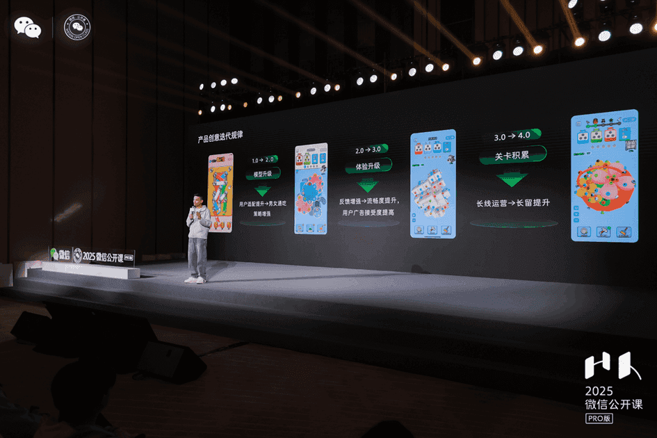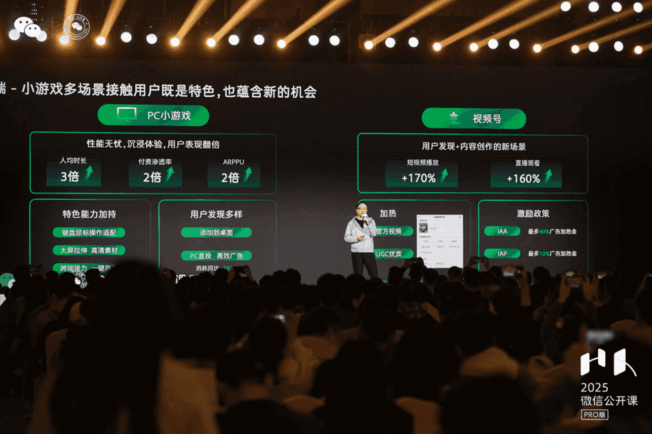 1月9日,“2025微信公开课PRO小游戏专场”在广州举行,活动现场,微信小游戏团队分享了平台最新数据和趋势,另外4个热门小游戏开发团队则分别分享了他们在微信小游戏生态中积累的经验和感受。