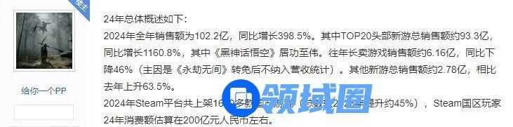 2024年Steam平台共上架1600多款国产游戏(总数较2023年提升约45%),Steam国区玩家24年消费额估算在200亿元人民币左右。”
