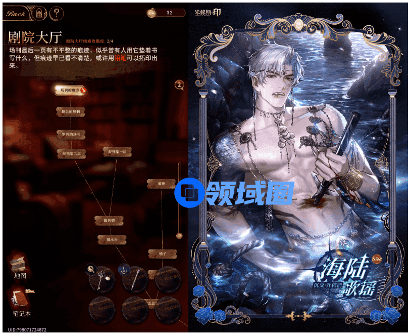 比如活动玩法“格洛瑞斯绝唱”就让冰棍在内的不少玩家惊喜。它采用了当下乙游戏少见的“恐怖向”剧本杀玩法形式,让玩家用“文字模拟”的方式探索剧院,收集磁带、实验记录等物品,一步步揭开拉瑞斯集团研究的内幕和当晚无人生还的惨案。甚至主线之谜——物管局长之死——也串联其中,荡气回肠又细思极恐。(假装没被吓到)