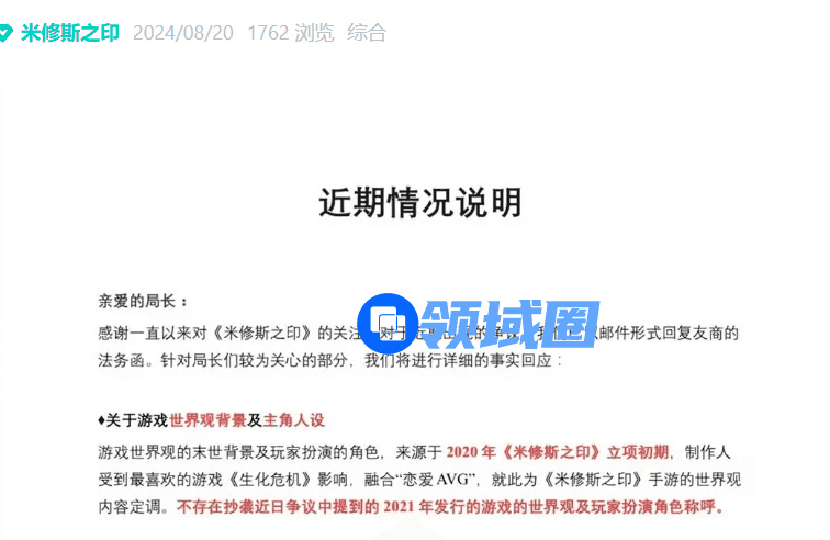 此外,因主控瞳色与《未定事件簿》主角相近,也似乎成为“导火索”,《米修斯》逐渐陷入网友及玩家举办的“鉴抄大会”。不仅有玩家认为末世题材、主控“局长”身份与《无期迷途》设定撞车,其立绘、UI设计均涉入其中。在游戏之外也是祸不单行,初创公司名号未响,多益网络的公告还顺带殃及了《米修斯》研发团队安尼帕,传闻“辱女”。