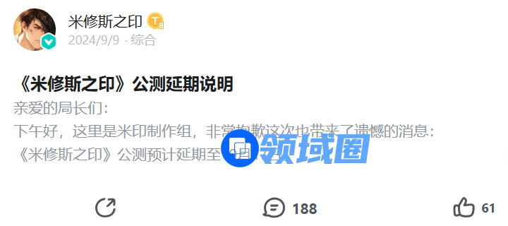 但面对争议易陷自证困境,更不论分身乏术的小团队。伴随争议,《米修斯》引起更多关注,在9月,官网预约数破百万。但同时,游戏评分持续下跌,直至9月8日,TapTap期待值仅5.9分。其后,又因公测前测试出现问题,《米修斯》的公测日期延期两次。