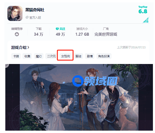 例如完美世界《黑猫奇闻社》便曾在测试期间删去“乙女”标签,化身“女性向”游戏。尽管游戏题材玩法在都市怪谈解谜上大做文章,但抱着乙游初印象的玩家进入游戏后,发现恋爱体验浅尝辄止,也导致游戏体验难以定性。上线一周后,在最高获得畅销榜第98名后,跌出榜单。