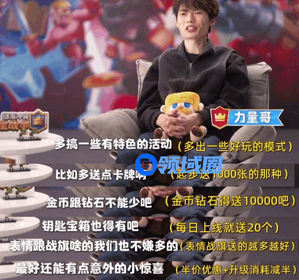 此前,1月17日,《皇室战争》著名内容创作者老陈在回归秀中采访力量哥(《皇室战争》职业选手黄成辉)对于2025《皇室战争》的期待,力量哥表示「希望国服能多一些有特色的活动,多送一些福利」。作为《皇室战争》资深玩家和职业选手,他的期待自然也代表了众多《皇室战争》玩家的心愿。