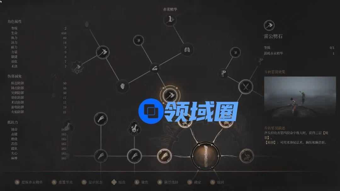 这也就意味着,前期的武器选择几乎决定了玩家的属性数值,也同样决定之后要走的流派。比如,斧头技能树的属性多是活力和耐力,提升血量和精力,而双手剑的属性多是羽化和法术,是法爷们的最爱。