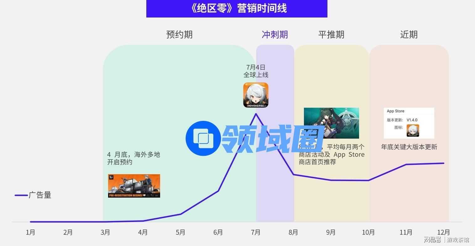 4月底,《绝区零》陆续在海外部分市场开放预约,广告投放也同步跟进,并在上线时达到投放高峰。据 AppGrowing 国际版 的“营销时间线”功能,我们可以看到米哈游主打“品效合一”的营销策略,主要以高频率的商店活动与推荐扩大品牌影响力。游戏上线后,8-10 月平均每月上线两个商店活动,并得到 AppStore 首页推荐;年底,游戏推出 1.4 大版本更新,加上多个节日营销节点,投放量明显抬升。