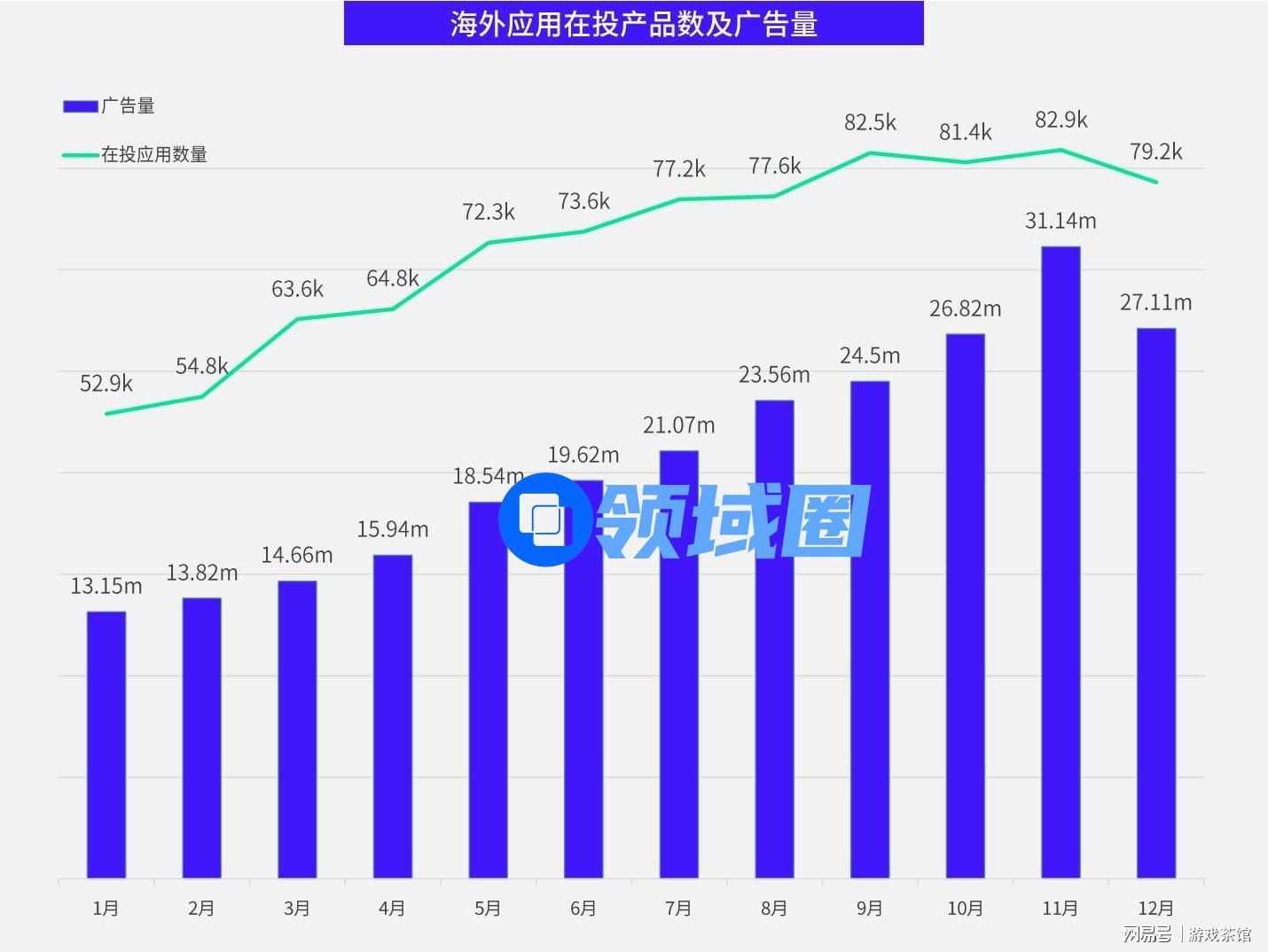 2024 年,非游应用市场继续保持活跃,月均在投数突破 7.1w,同比暴涨约 92%;广告量整体保持上升趋势,12 月广告量对比 1 月实现翻倍增长。
