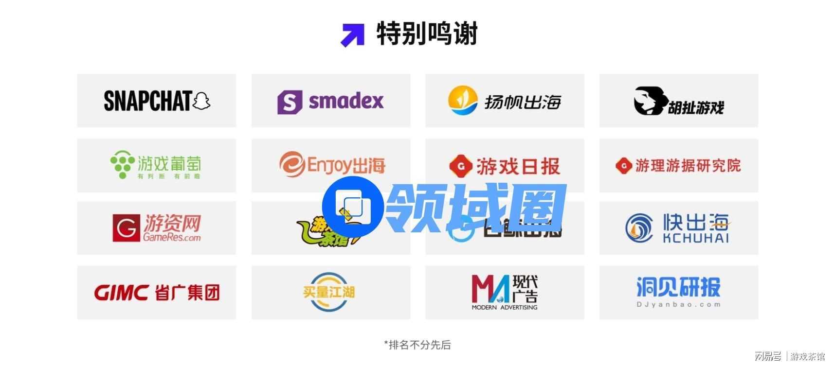 特别鸣谢 Snapchat、Smadex、扬帆出海、胡扯游戏、游戏葡萄、Enjoy出海、游戏日报、游理游据研究院、游资网、游戏茶馆、白鲸出海、快出海、省广集团、买量江湖、现代广告、洞见研报,对本次数据报告的大力支持。