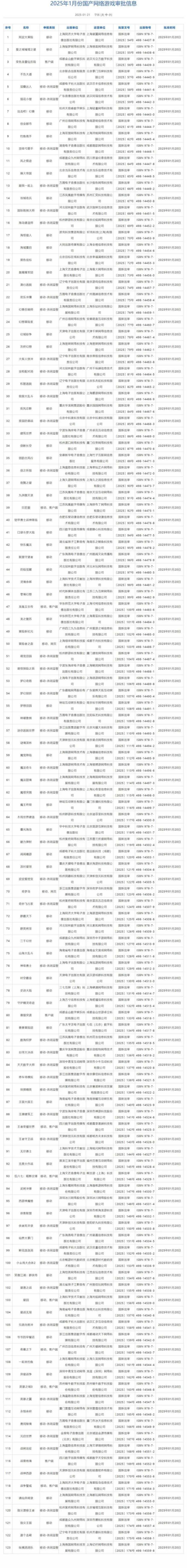 今日,国家版署下发了2025年1月国产游戏版号过审名单,共计123款产品过审,其中移动游戏120款,客户端11款。