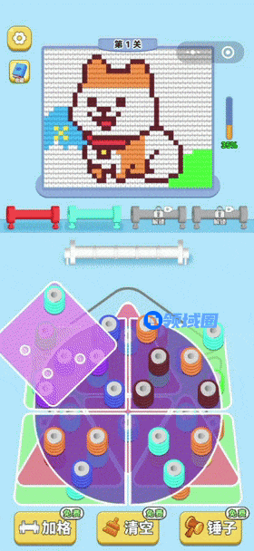 其中《玩个儿毛线》是一款益智解谜类小游戏,玩法类似于此前的螺丝解谜玩法,不过游戏中的螺丝元素被替换成了毛线,玩家在游戏中需要根据颜色,将不同毛线卷到对应的卷筒上,三卷毛线可以消除一个卷筒,当所有毛线均被消除之后,玩家就能通过关卡,并获得一幅漂亮的刺绣图。