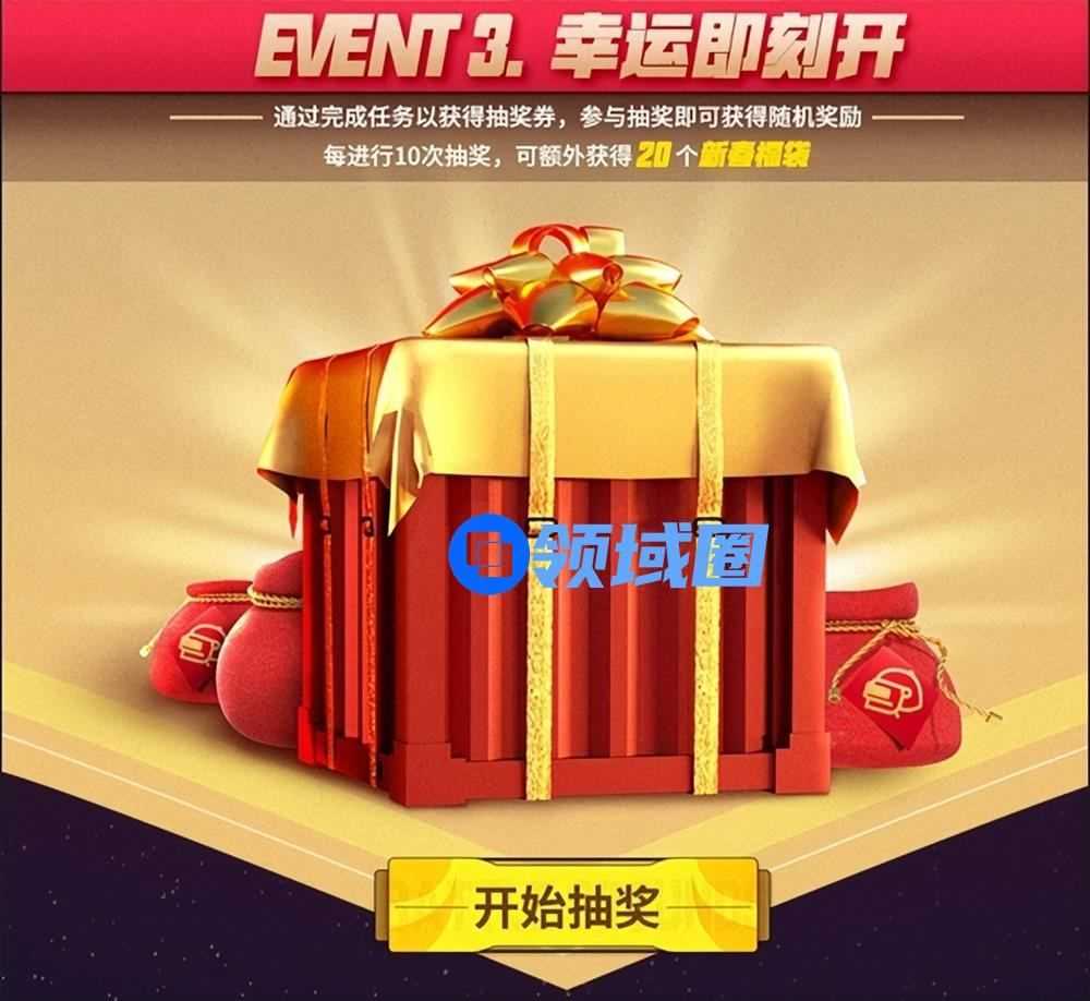 活动3:幸运即刻开:使用抽奖券即可获得随机奖励,每进行10次抽奖,还有额外新春福袋奖励!