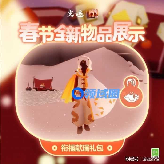 活动期间,《光·遇》上线了一系列全新的国风服装物品,如折扇、舞狮裤、福蛇斗篷套装等,玩家可以灵活搭配,扮演古装四大才子,感受传统文化的魅力。这些精美的物品不仅展现了中国春节民俗的优雅与韵味,也让玩家在游戏中体验到别样的新年氛围。