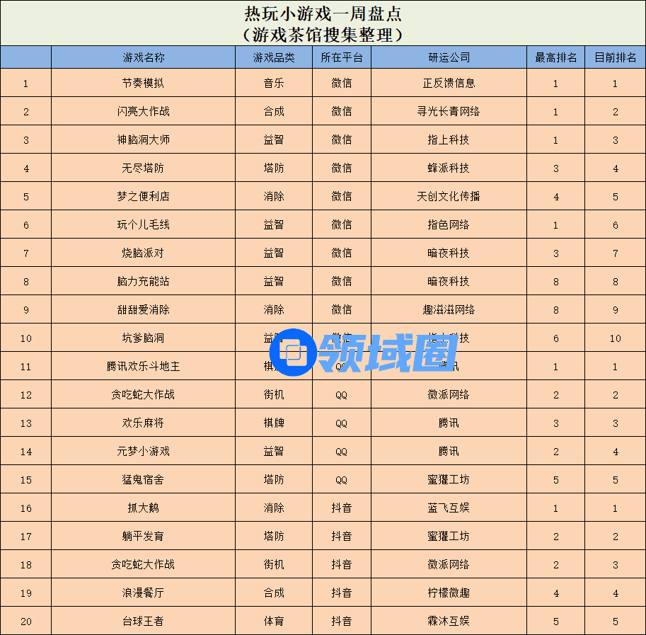 QQ小游戏热玩榜单中,本期依然没有出现突围新游,其中腾讯的棋牌游戏《腾讯欢乐斗地主》以超高热度稳霸榜单第一,微派网络旗下的经典爆款《贪吃蛇大作战》紧随其后,拿下榜单第2名,同样来自腾讯的另一款棋牌游戏《欢乐麻将》和围绕“元梦之星”打造的《元梦小游戏》也分别拿下了第3和第4名的好成绩。