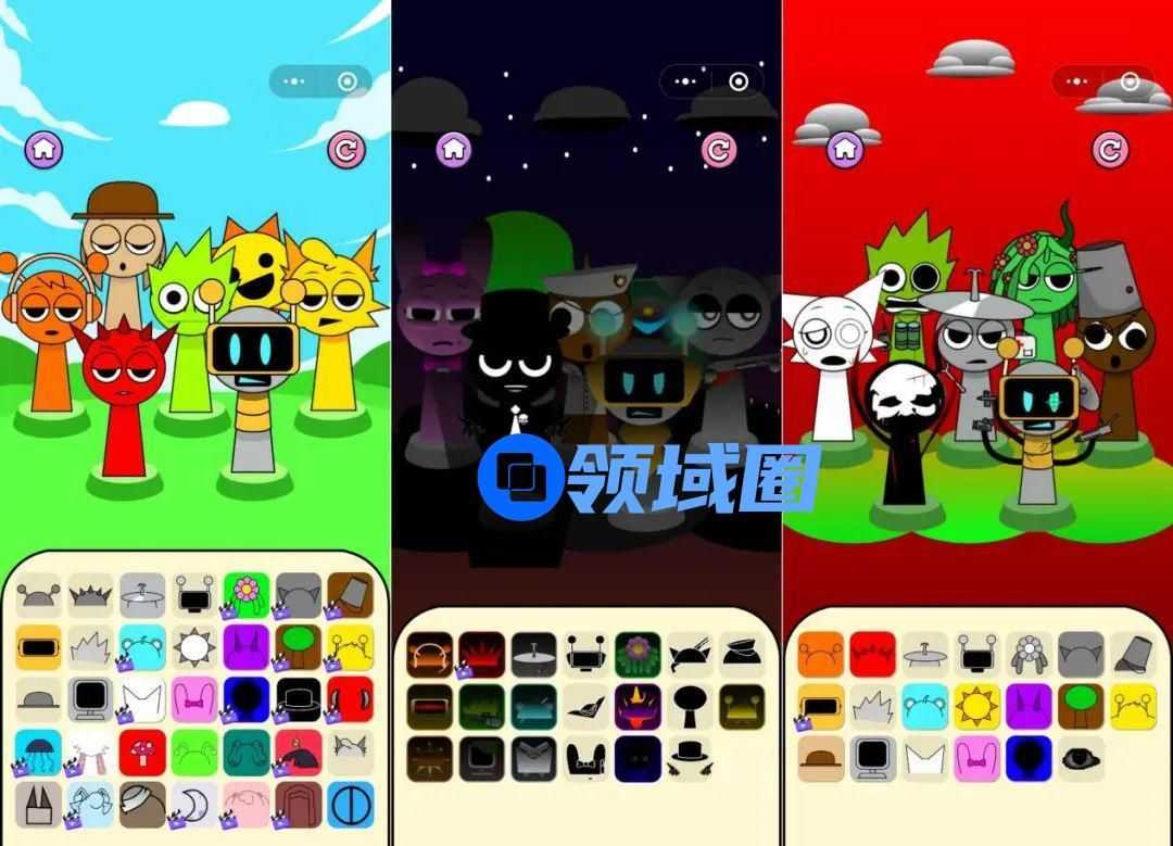 《节奏模拟》取材于在海外大火的音游《节奏盒子》模组“Sprunki”,游戏画面非常简洁,只有几个卡通形象角色和下方不同的节奏按钮,玩法也非常简单,玩家只需要将下方不同按钮拖拽到上方的角色上面,对丰富的节奏进行不同的排列组合,就能获得一段专属自己的音乐节奏。