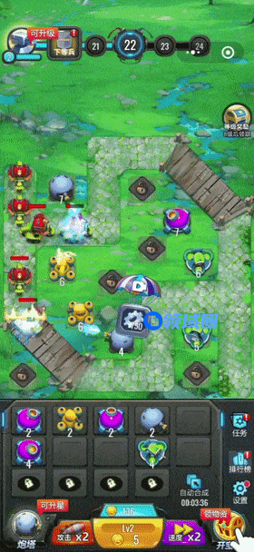 《无尽塔防》是一款融合了合成+塔防玩法的产品,进入游戏后,玩家可以花费一定金币购买不同炮塔,相同炮塔可以合成为更高一级炮塔,将这些炮塔安置在通道旁的塔位上,即可消灭源源不断袭来的敌人,获得更多金币奖励。