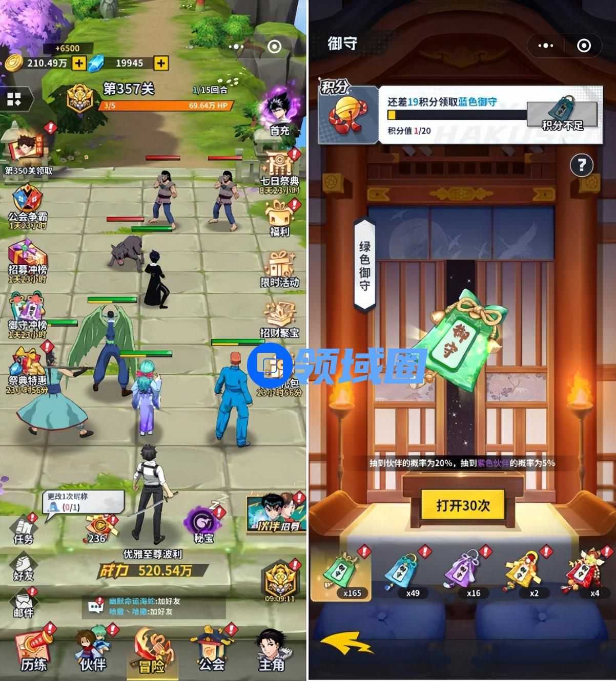 《幽游白书:宿命觉醒》是一款以经典动漫“幽游白书”IP为题材打造的“咸鱼like”卡牌放置游戏,游戏主线关卡以自动模式推进,主角可带5名角色进入关卡,每次战斗结束后,玩家就能获得御守(类似咸鱼的开箱玩法),获取更多道具和角色。该游戏上线后,最高冲上畅销榜TOP4和投放榜TOP1,显示出了极强的市场竞争力。