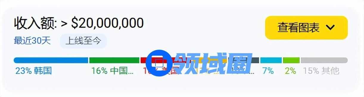 在11月中旬上线后,《弓箭传说2》在12月渐入佳境。据Sensor Tower,其海外收入达到11月的2.3倍,并首次入围海外收入榜第17名。目前,1月初,该款游戏在美日法上线后成绩不错。据AppMagic,除韩国(23%)和中国台湾地区(16%)较为青睐这款游戏,上线稍迟的美国(16%)和日本(10%)的收入占比也趋近持平。由点点数据显示,自上线后截至2月4日,《弓箭传说2》全球净收6264万美元(折合人民币4.57亿元)。