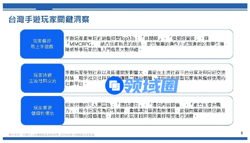 对于台湾玩家来说,手游收益前十名的游戏类型为休闲、MMORPG和竞技。因为文化和玩家口味相似,中国港澳台地区往往是国产游戏出海过程中测试游戏内容和玩家数据的第一站。