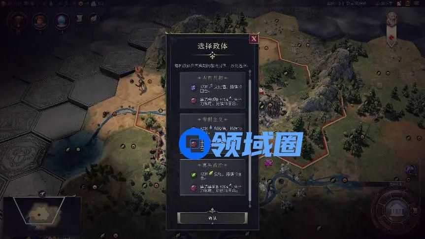 举几个例子,视听方面,各种廉价的细宋体泛滥,与游戏的画风完全不搭。在游戏加载界面,领袖介绍的文字和文明介绍的文字甚至不是一个字体,令人哭笑不得。游戏中各类UI的排版也是毫无美感可言,在选择政体时,本作的选择界面像是大学生应付了事的课程作业。