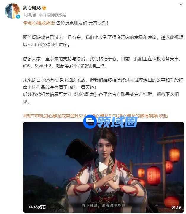 于此同时,《剑心雕龙》的官方也在微博发布动态,表示:“距首爆游戏名已过去一月有余,我们也收到了很多玩家的意见和建议,谨以此视频展示目前游戏制作进度。