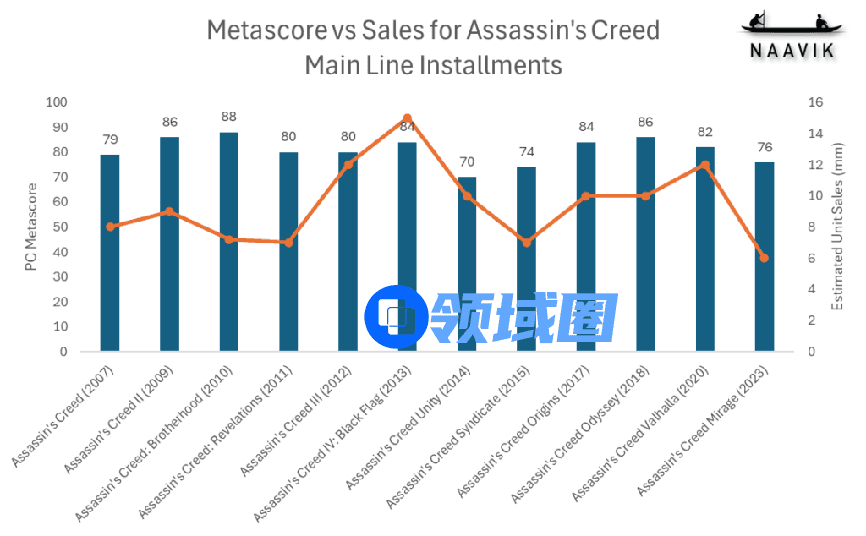 拿其最为畅销的《刺客信条》来说,这个系列基本按照一年一款的速度稳步产出,不论是媒体评价还是销量都在水平线之上,有一些创意的,比如引入海战的《刺客信条:黑旗》更是大赚特赚。