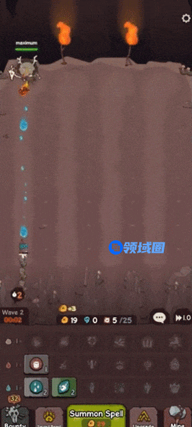 游戏玩法仍以“塔防”为核心,对局开始后,玩家可以花费金币随机召唤一个咒术,三个相同咒术可以合成一个更高等级的咒术,召唤来的咒术会自动攻击敌人,消灭敌人后即可获得更多金币奖励。