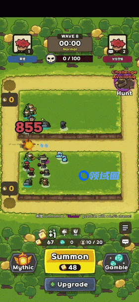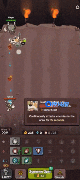 当解锁指定的几种咒术后,玩家还可以召唤“神兽”加入战局,神兽可自由移动位置、会自动攻击,可以快速消耗怪物血条。