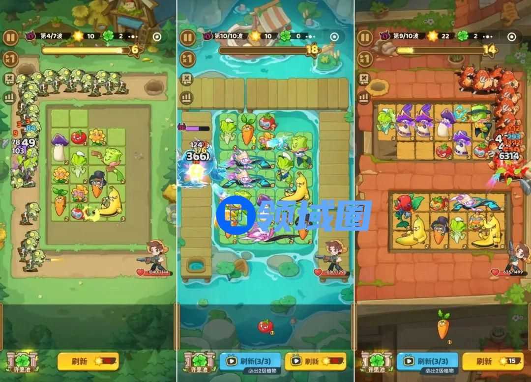 开始游戏后,玩家只需要将系统随机提供的植物英雄,放进有限的格子内,就能组成我方战力,抵挡不断前进的怪物,保护位于终点的主角。战斗过程中,玩家可以随时合成或移动植物,通过阵营调整提升输出效率。