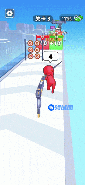 《全明狙击》是一款结合了射击+跑酷玩法的产品,玩家需要控制关卡中的武器,在前进的跑道中左右移动,消灭各种阻碍,同时选择通过不同闸口,对武器属性进行提升,进一步增强射击效果,获得更多关卡奖励。在关卡挑战中获得的奖励,又可以用来购买并合成更多武器配件,进一步提升武器战力。