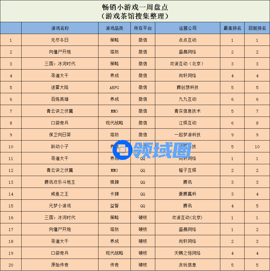 热玩小游戏:益智消除持续火热,《全明狙击》冲上TOP10