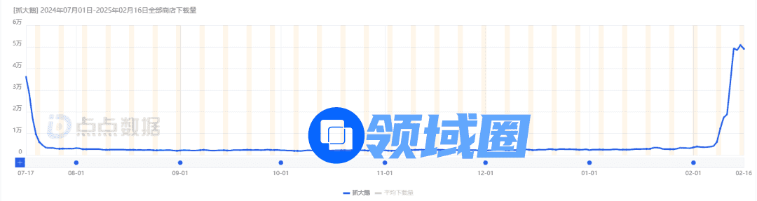 《抓大鹅》手游早在去年7月就上线了APP Store,但从点点数据预估的下载规模来看,该手游的热度下降很快,自七月底开始游戏单日下载就难以过万,直到进入今年2月份,该游戏突然迎来新一轮增长高峰,单日下载量在2月15日达到了超5万次的最高峰。