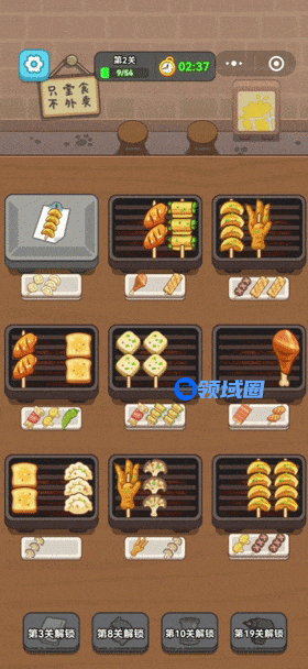 同时,一款名为《疯狂烧烤摊》的消除游戏也在本周冲上了免费榜TOP15,拿下了榜单第14名的好成绩。该游戏是一款益智消除类游戏,玩家只要将三个相同的食材串放到同一个烤盘上,即可完成上菜,上菜后,对应烤盘下方的其他食材会自动补充到烤盘上,直到所有食材均被消除,即闯关成功。