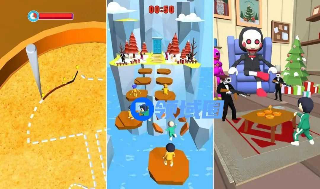 其中《456 Run Challenge: Clash 3D》实际上就是一款以大热剧集“鱿鱼游戏”为题材,糅合了木头人、玻璃栈道、拆糖、捉迷藏、拔河和大逃杀等各种小游戏玩法的产品。玩法上惊喜不多,主要采取的是以量取胜的策略。