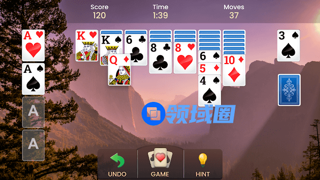 另一款《Solitaire - Classic Card Game》的玩法取之于经典单人纸牌玩法“Solitaire”,玩家只需要利用偶先空位,将打乱的扑克牌根据一定规则进行排列,最终将所有牌都从桌面移出即可过关。