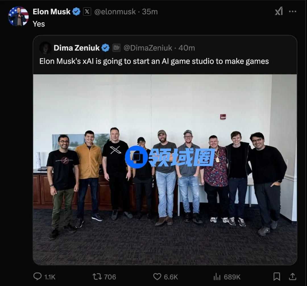 昨日,借由对网友分享的xAI部分团队成员照片的分享,马斯克在社交媒体正式官宣,其旗下xAI 已成立一家 AI 游戏工作室。