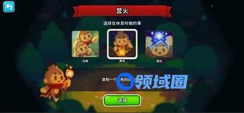 在各式趣味挑战以外,地图中还设置了营火、商人、战利品宝箱等补给点,玩家可以在此招募猴子、训练猴子、提升神器威力或购买商品。