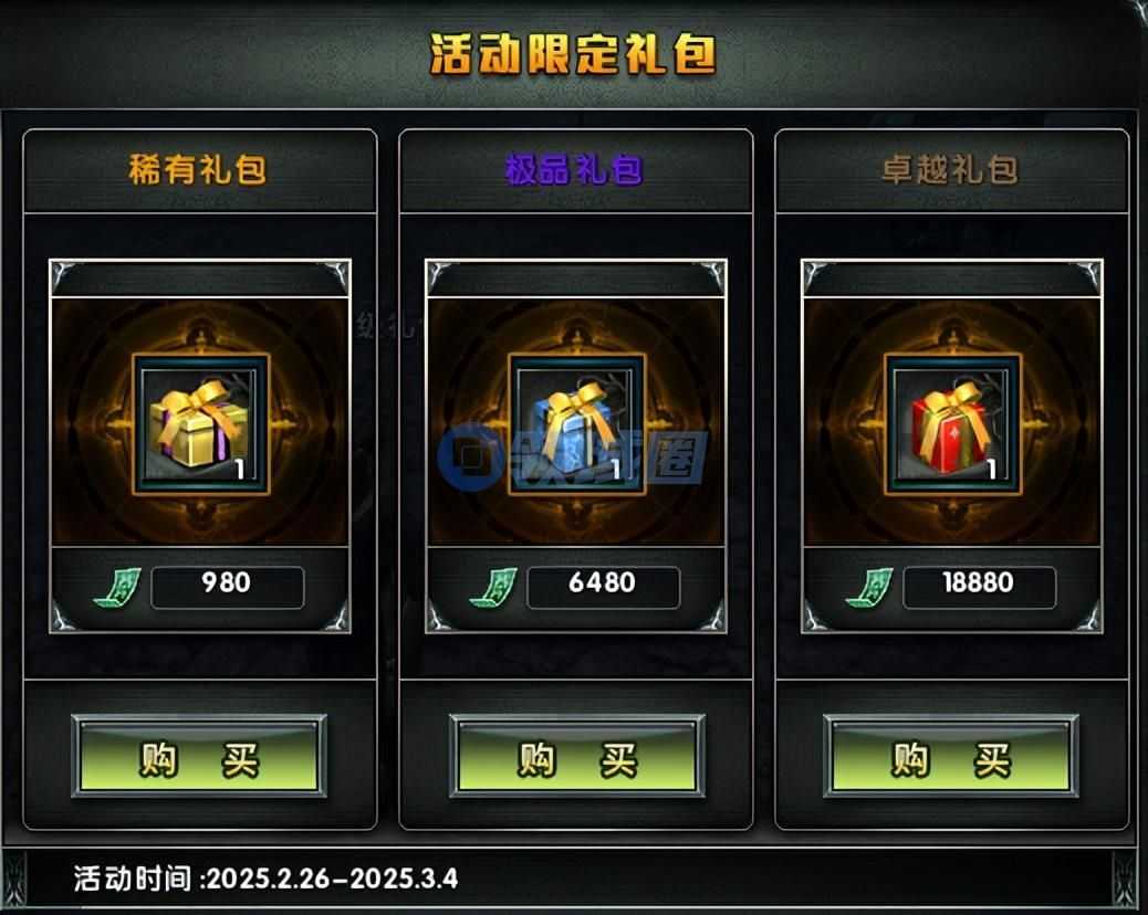新区种族争霸推出超高价值特别限定礼包,三种档位可供选择,每个档位都包含超高福利,限定特惠,仅可在开服期间购买。