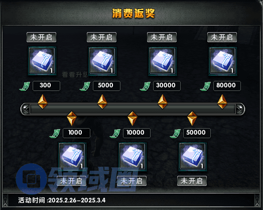 活动期间内消费点券达到指定数量可领取超值返奖,共7阶消费礼包可供选择。