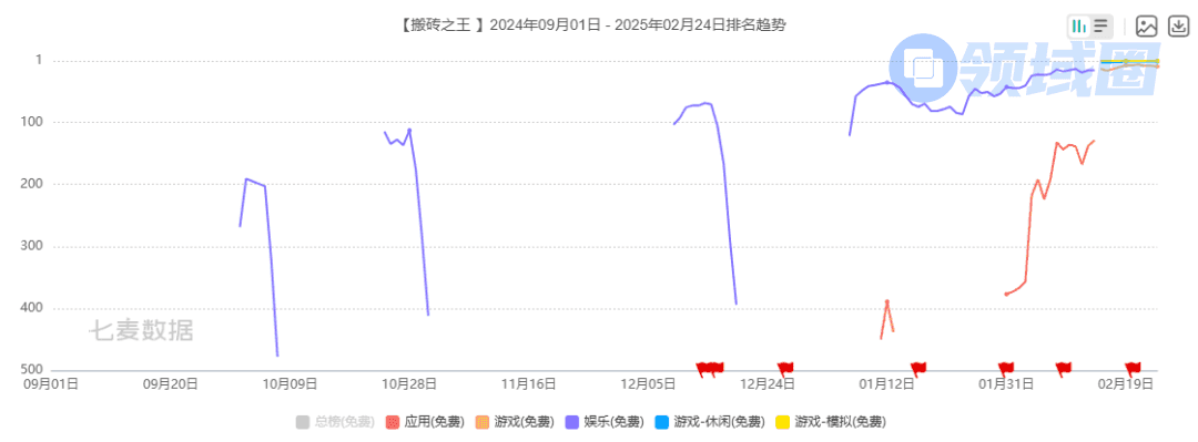 该游戏最早上线于2024年10月,不过上线早期产品表现平平,直到今年2月15日新版本发布之后,游戏才终于迎来了爆发,一举冲进了App Store免费榜TOP20,并在本周挺进榜单TOP10。