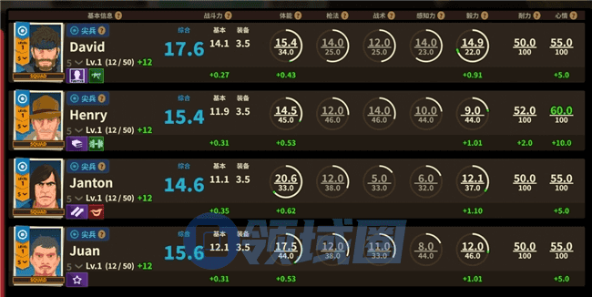 游戏中玩家的小队最多可以编入4名职员,他们不仅有不同职业,还有不同的天赋与能力值,你可以在猎人那里根据自己的需求招募员工。比如你有了个非常抗揍几十子弹都打不死的前排先锋兵,那后排的狙击手只要枪法够准,那身体再虚弱也不碍事。