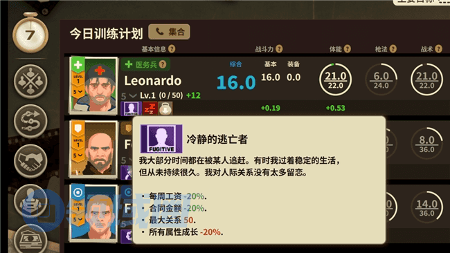 任务之间玩家也可以通过日常训练,来提升职员的各项属性,但要注意职员之间可能因为性格不合而争吵,或是因为任务负伤导致的士气低落,这时候是考虑向社会输送人才,还是给他们放个带薪假恢复团队凝聚力,就由你这个老板决定了。