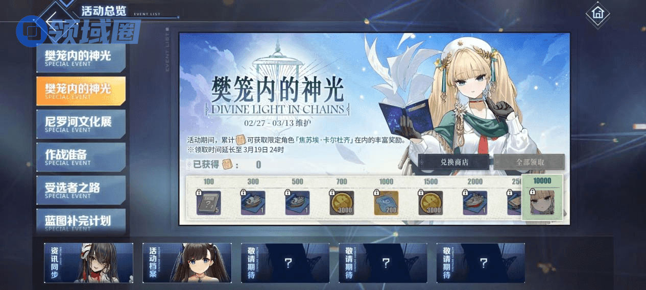 此外,累积「绘画草稿」达到不同阶段可获取限定活动角色「焦苏埃·卡尔杜齐」、特装型布里MKIII、高级定向蓝图·七期、克洛希德科技箱 T5等丰厚奖励。最终完成活动纪念册亦可获得本次活动纪念章「永夜之冠(复制品)」和活动勋章「圣翼神光纪念勋章」。