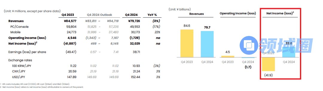 不过,Nexon在上财年第四季度的营业收入为797亿日元,同比下降6%,整体低于预期,营业亏损为17亿日元,Nexon指出,亏损的主要原因是多款产品的收入疲软。