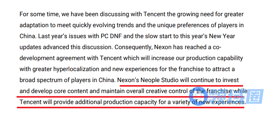 目前,Nexon基于与腾讯的合作分析,与腾讯达成了一项共同开发协议,该协议已经讨论了一段时间。根据协议,接下来,开发商Neople工作室将主导游戏的核心内容开发与创意控制,而腾讯则负责提供额外的产能,以实现产品的超本地化,在创造新的体验的同时根据不断变化的趋势调整游戏。